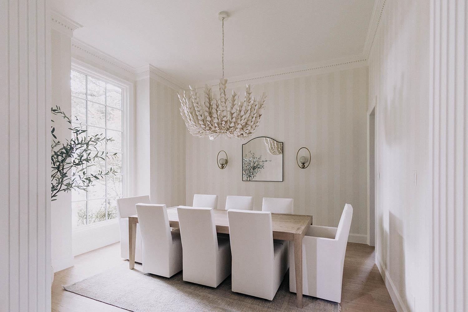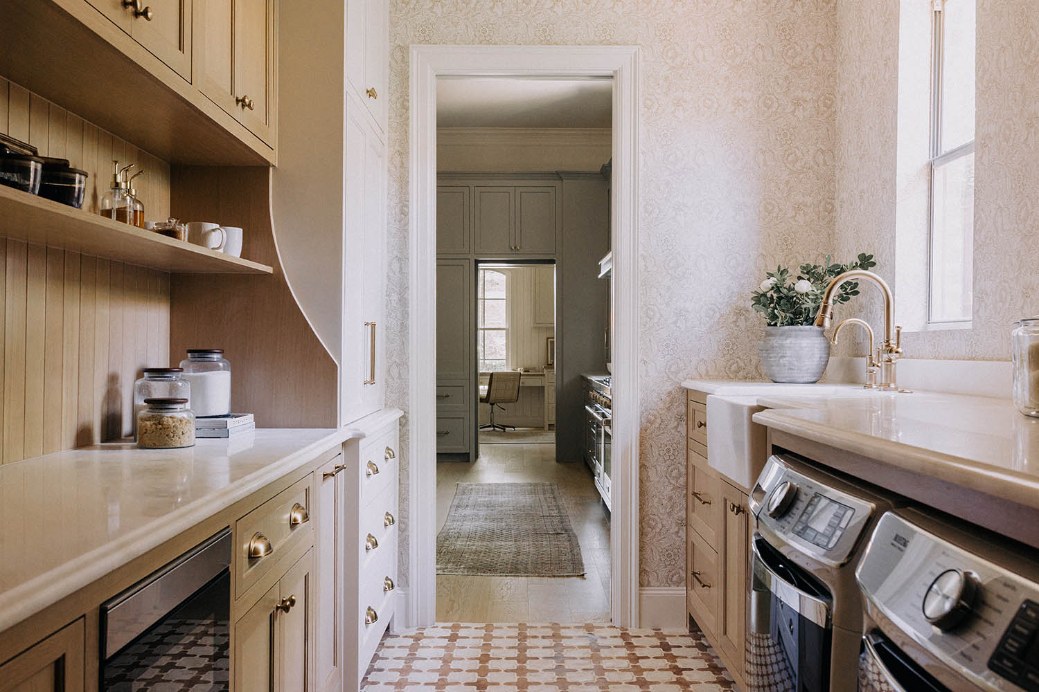 Throughout the rest of the home, every space was reconsidered with purpose. The dining room was refined to improve flow while still honoring the original millwork. The laundry and pantry were reworked into a cohesive, hardworking utility zone with custom storage and elevated finishes that feel consistent with the rest of the home.